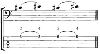 A feature of notes produced via hammer-on fingering is that they sound softer than notes plucked by other techniques. To practice hammer-on fingering, the following exercises may be useful (Ashton 2005, 132):