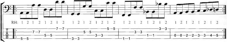 To practice this kind of fingering, one can deaden the strings and do the following (Ashton 2005, 135-136):
