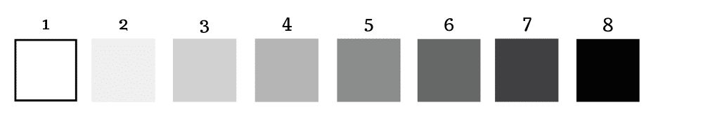 Values are shades of gray, on a scale ranging from black to white. They correspond to how dark or light, in any color, anything appears in the world around you. Beginners initially refer to values as “shading” or “shadowing.”