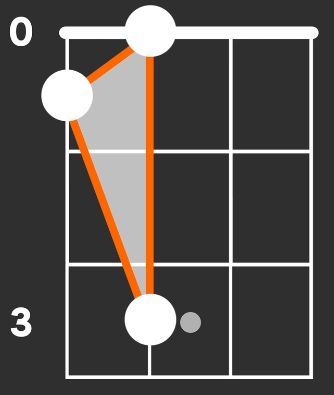 This major triad can be transposed by simply shifting the appropriate shape around the fretboard, i.e. by altering the root key or note that determines the subsequent comprising notes or keys.
